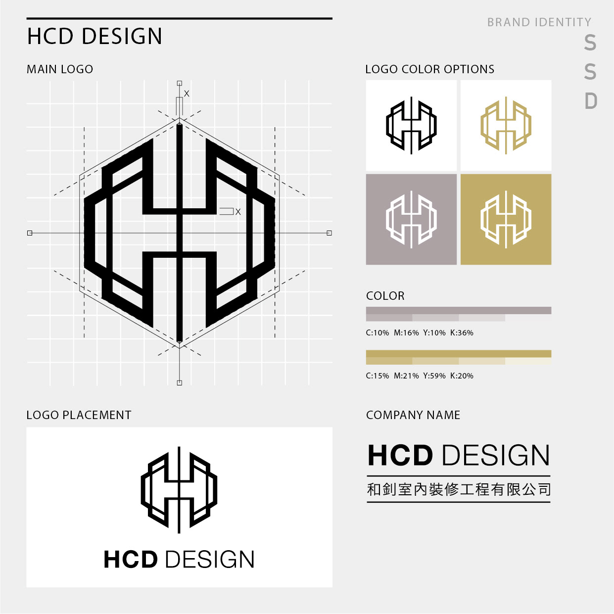 擁有十多年實戰經驗的HCD和釗室內設計公司,客戶從台北101商業大樓、遠到屏東滿洲鄉的民宿,企業版圖遍佈全台,為更突顯將來在設計及工程的野心,進行企業識別的更新設計。 以HCD三個英文單字為標誌基礎,透過剛硬的筆畫詮釋HCD的高品質管控與堅持,對稱的圖像設計同時也將「聚寶盆、八卦」正向力量的寓意置入其中,讓整體識別呈現專業嚴謹、穩健扎實的企業形象。 HCD和釗室內設計,創意裡的穩健扎實